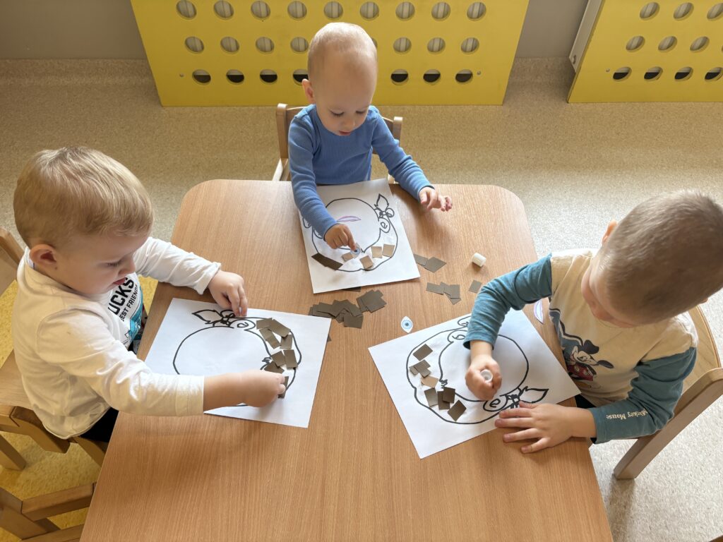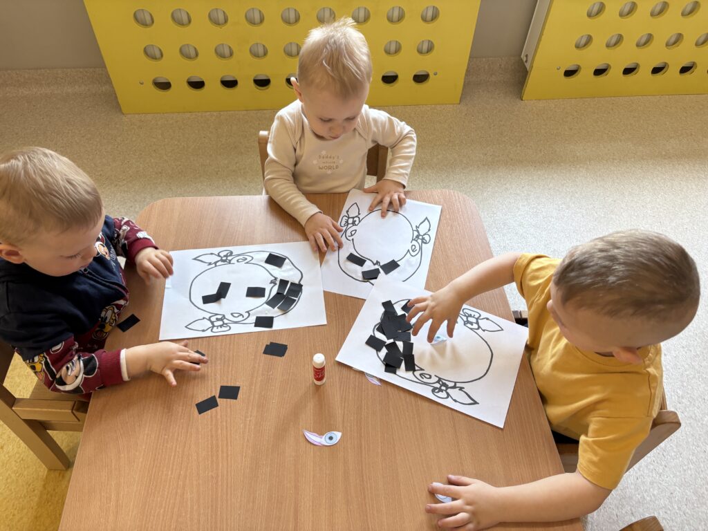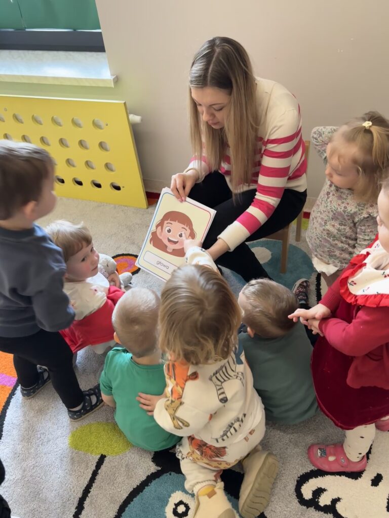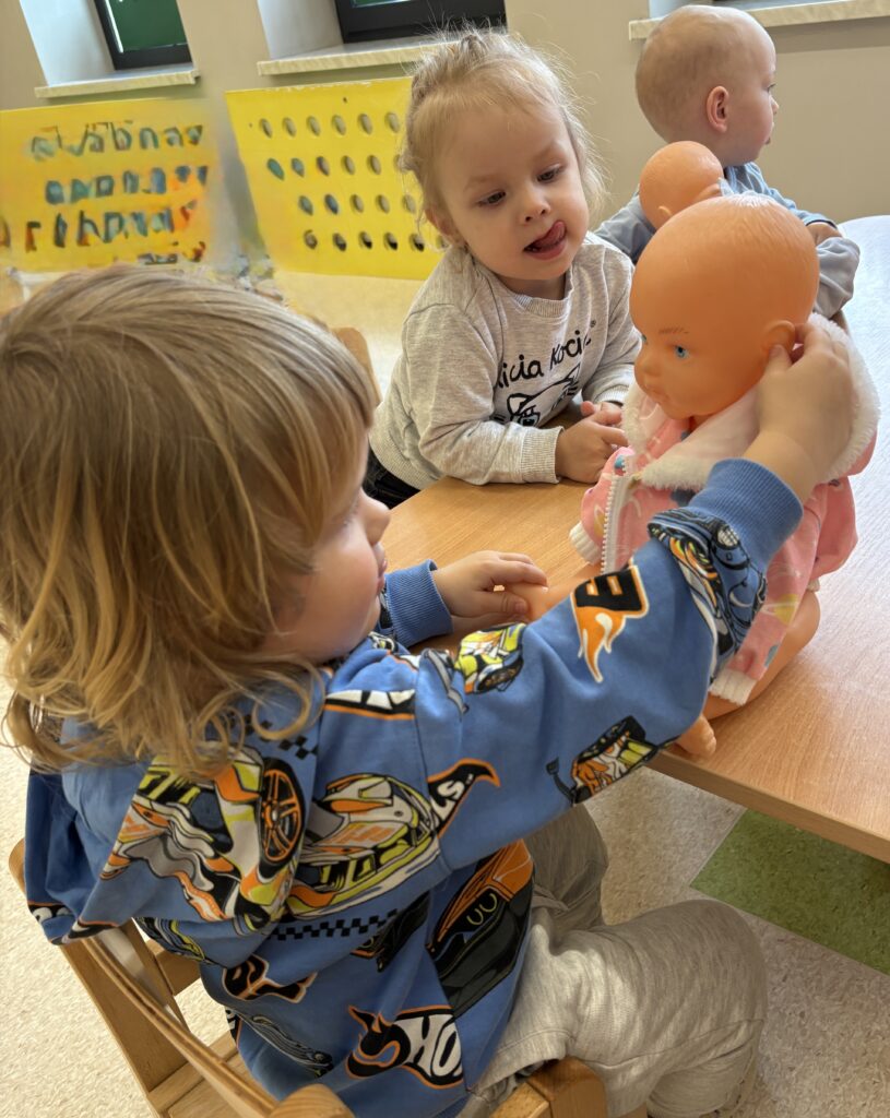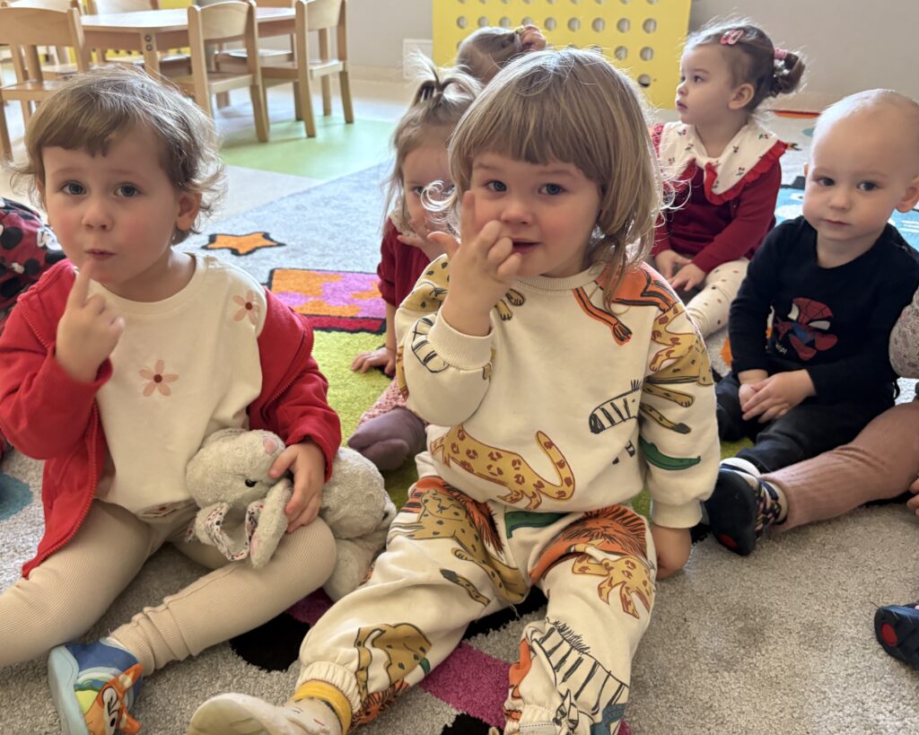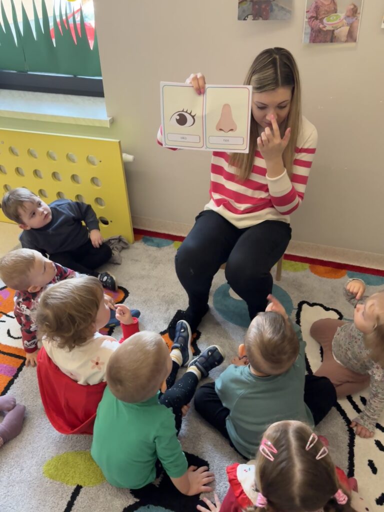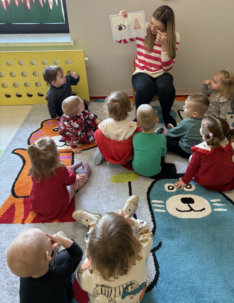 W minionym tygodniu w Klubie Malucha poznawaliśmy części ciała. Bardzo pomocne okazały się zabawy ruchowe z pokazywaniem do piosenek takich jak „Pokaż Grzesiu…” oraz „Głowa, ramiona, kolana, pięty..” w których dzieci chętnie brały udział.
